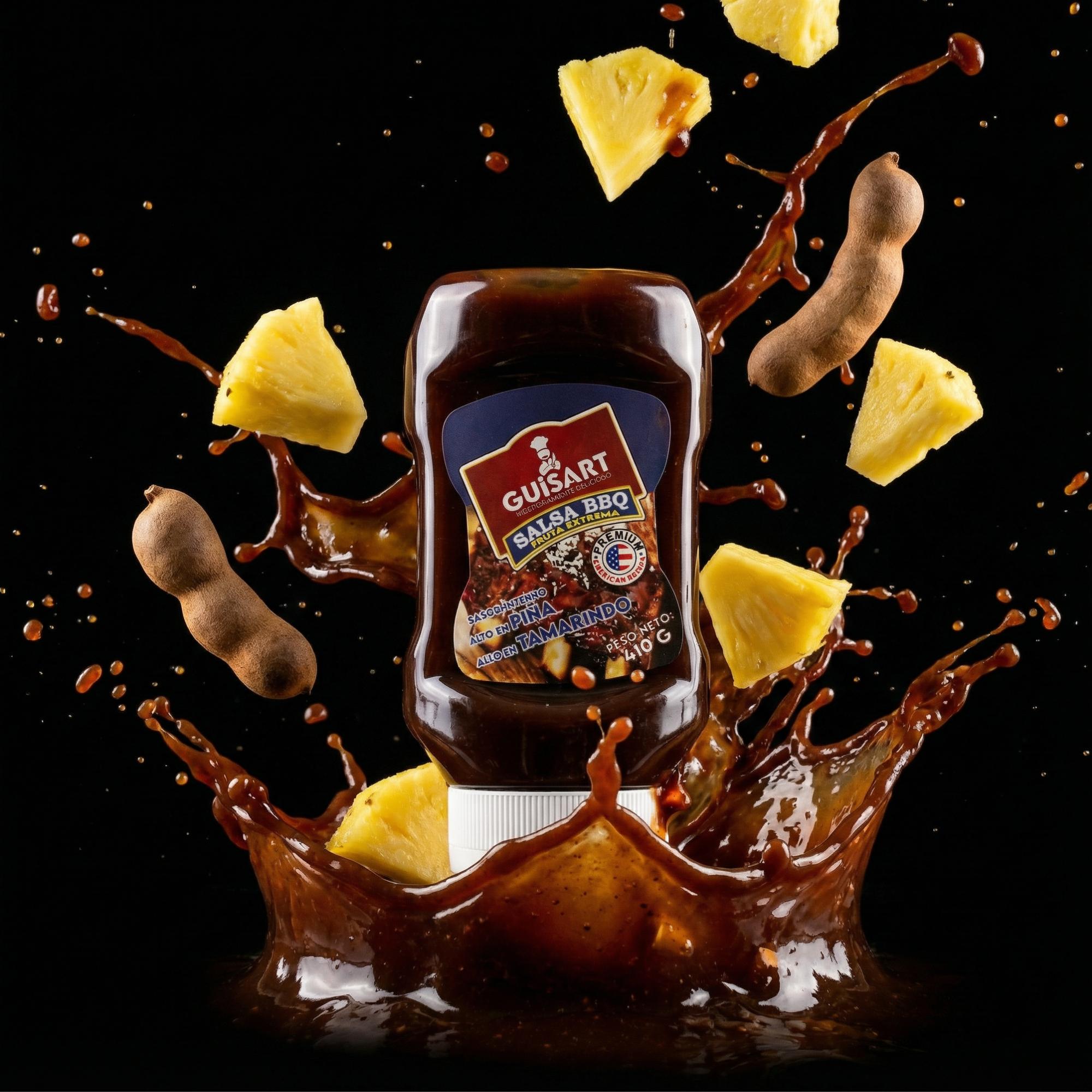 Salsa BBQ Guisart «Fruta Extrema» (Piña + Tamarindo) 410g | Formato Squeeze Anti-Desastre